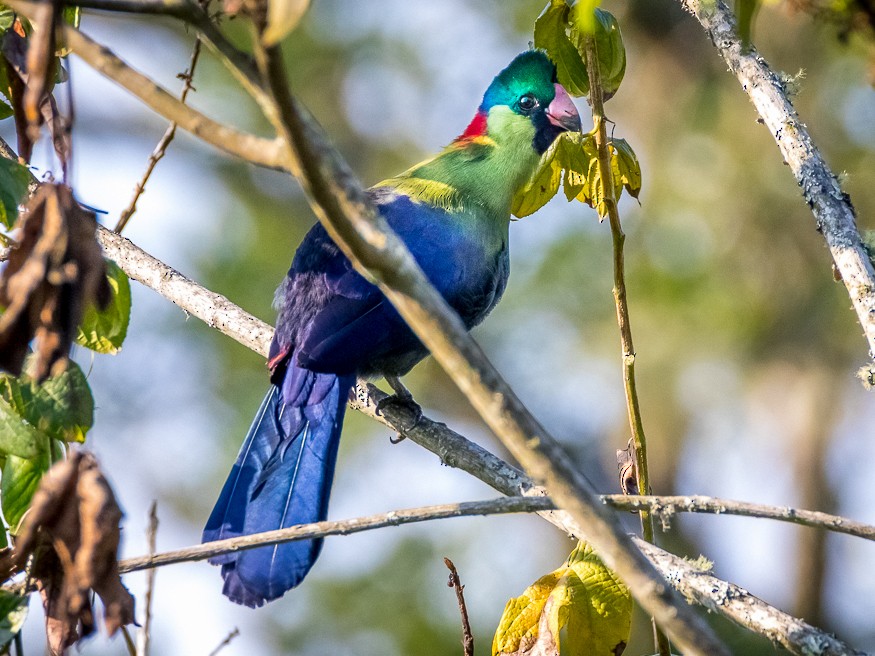 A rwenzori turaco likes to feed in figues in the montane forests rwe. Gallirex johnstoni kivuensis (e drcongo, rwanda, burundi and sw uganda);